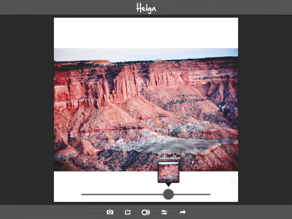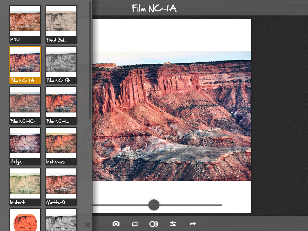 The icon based menu at the bottom of the interface gives you the choice of first cropping the photo to the desired size, aspect ratio, and border styles. The filter icon then leads you to the heart of the app, where you can access filters with names like 1962, 1974, Film NC-1A, Instachrome, Pinhole, Field Guide, Helga, SLR, Portofino, and many more.